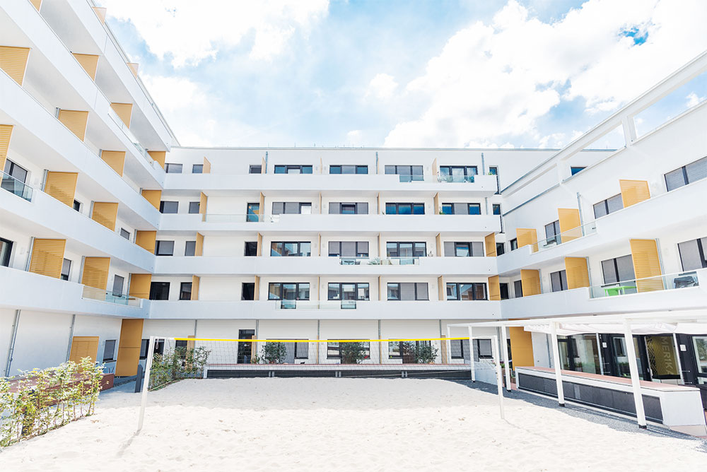 For team players, sports fans, beach boys and beach girls! And for all who like to move: In the courtyard of our apartment complex, our large beach volleyball court awaits you. Here you can let off steam and meet new people at the same time!